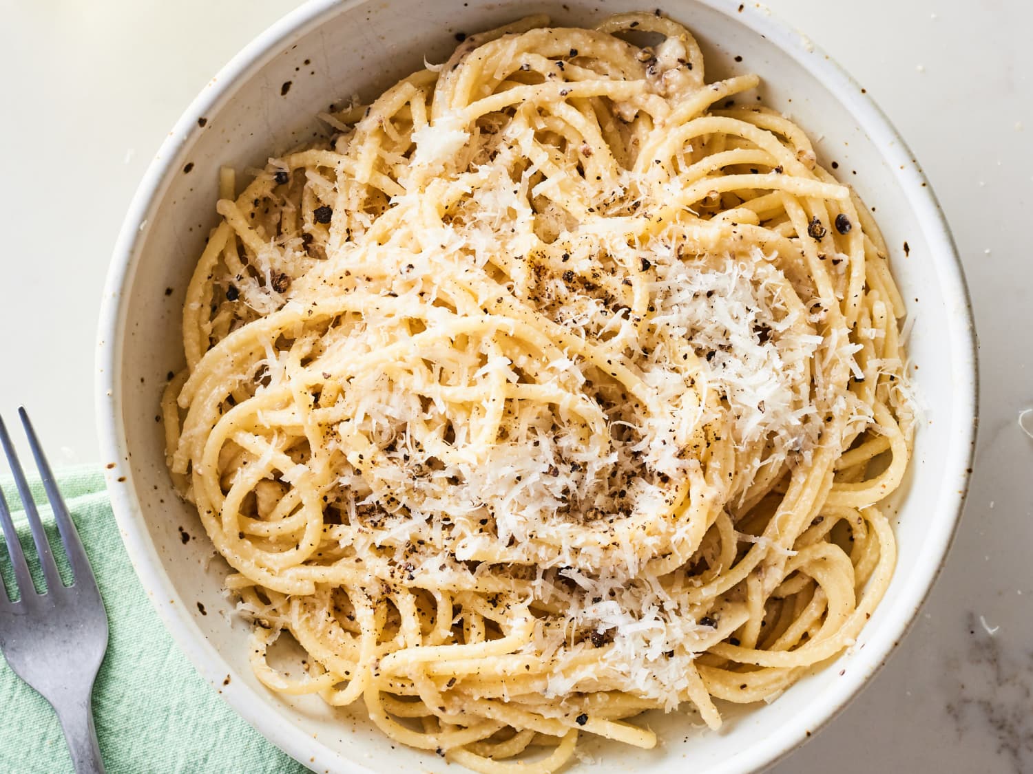 - Season the cacio e pepe with salt to taste, and serve it hot. We recommend garnishing the pasta with a sprinkle of extra cheese and a few grinds of black pepper.